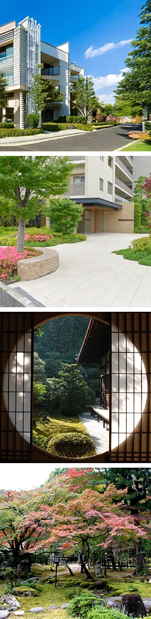 個人住宅における庭づくりでは、四季折々の変化を感じられる植栽や、暮らしの中で安らげる空間をご提案しています。